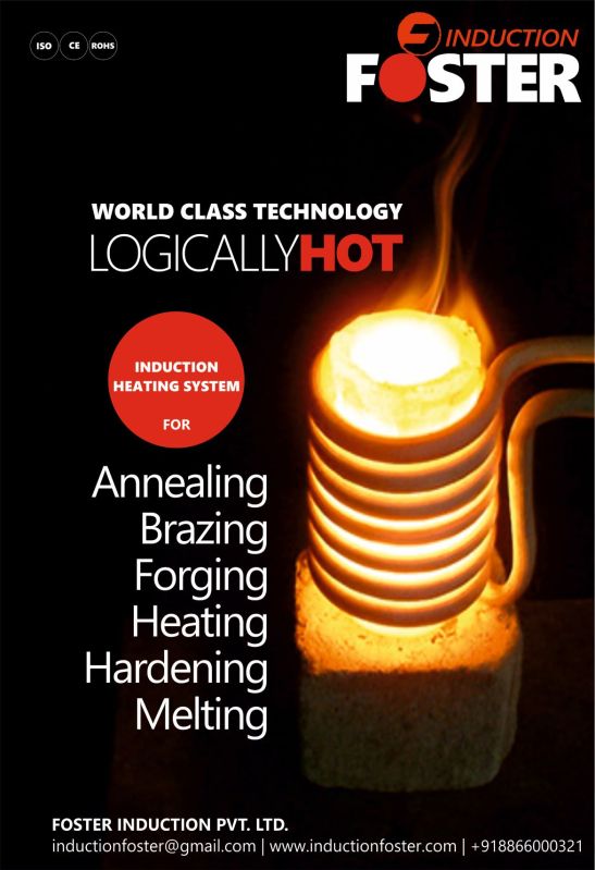 Induction brazing is a process in which two or more materials are joined together by a filler metal that has a lower melting point than the base materials using induction heating. There are specific reasons to use induction heating for industrial brazing. These include selective heating, better joint quality, reduced oxidation and acid cleaning, faster heating cycles, more consistent results and suitability for large volume production.Induction heating can be targeted to provide heat to very small areas within tight production tolerances. Only those areas of the part in close proximity to the joint are heated; the rest of the part is not affected. Foster Induction heating produces clean, leak proof joints by preventing the filler from flowing in areas that it shouldn't flow. This ability to create clean and controllable joints is one of the reasons that induction brazing is being used extensively for high-precision, high-reliability applications.Because the induction heating cycle is very short in comparison to flame brazing, more parts can be processed in the same amount of time, and less heat is released to the surrounding environment. “An induction brazing system quickly delivers highly localized heat to minimize part warpage and distortion.Foster Induction brazing system is a very repeatable and accurate process because variables such as time, temperature, alloy, fixturing, and part positioning are very controllable. The internal power supply of the RF power supply can be used to control cycle time, and temperature control can be accomplished with pyrometers, visual temperature sensors or thermocouples.Brand : FOSTER, 100% Make in India